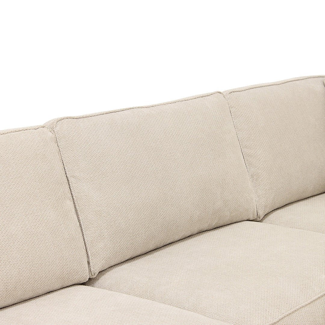 Das Ecksofa Colton 4-Sitzer Rechts Creme ist ein großzügiges und stilvolles Sofa, das deinem Wohnzimmer sofort ein luxuriöses Aussehen verleiht. Der weiche Vinci-Stoff in einem warmen Cremeton fühlt sich angenehm an und sorgt für einen eleganten Look, der sich leicht mit verschiedenen Einrichtungsstilen kombinieren lässt.