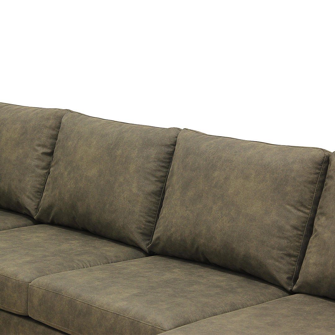 Das Ecksofa Houston 4-Sitzer U-Form Links Grün ist ein stilvolles und komfortables Sofa für dein Wohnzimmer. Der Preston-Stoff in einem tiefen Grünton verleiht dem Sofa eine frische und zeitgemäße Ausstrahlung.