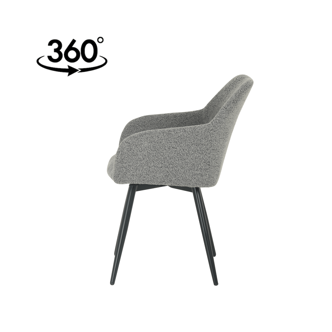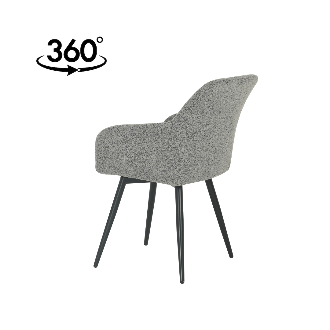 Die schwarzen Beine des Sockels sorgen für eine stabile Basis und bilden einen schönen Kontrast zum Dunkelgrauen Teddystoff. Kombinieren Sie diesen Stuhl mit einem Esstisch aus Mangoholz für einen modernen Look.
