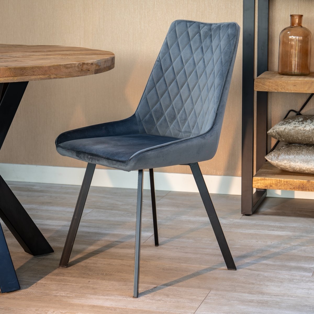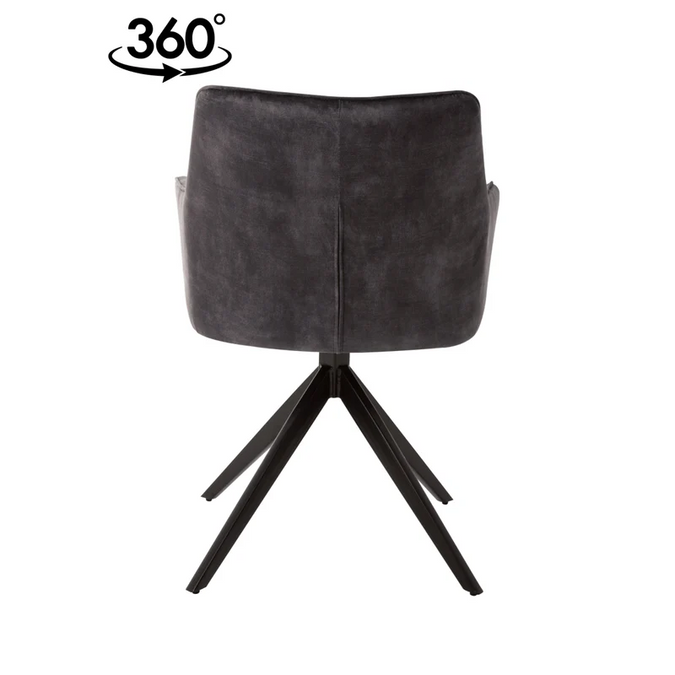 Der Dunkelgraue Samt-Esszimmerstuhl Cannes hat ein angesagtes und modernes Design mit einem stilvollen Look. Die Kombination aus der Dunkelgrauen Sitzfläche und den schwarzen Metallbeinen ist voller Klasse und macht den Stuhl zu einem echten Hingucker. Wird in Ihrem Esszimmer sein!