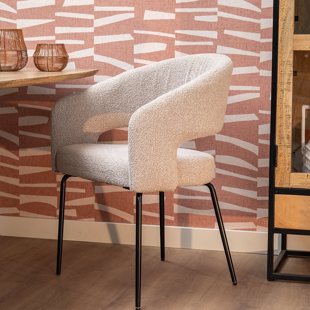 Samt wird aus Baumwolle oder Seide hergestellt. Der Stoff ist so gewebt, dass kleine, aufrechte Schlaufen entstehen. Diese Schlingen werden dann abgeschnitten, wodurch kleine Härchen entstehen, die sich sehr weich anfühlen. Dies verleiht dem Samt sein charakteristisches schickes Aussehen. Die Beine bestehen aus schwarz pulverbeschichtetem Metall.