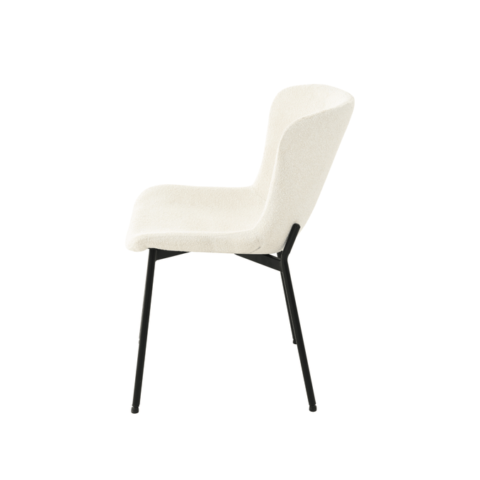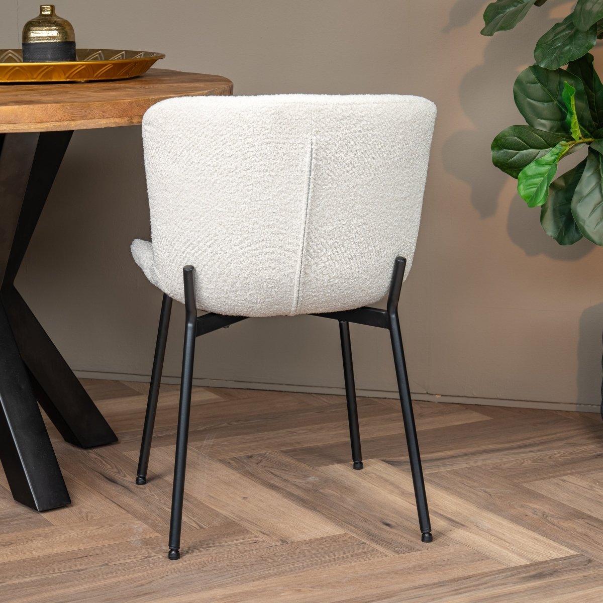 Verleihen Sie Ihrem Esszimmer zeitlose Eleganz mit dem Esszimmerstuhl Lille in Weiß. Der weiche Bouclé-Stoffbezug in diesem hellen Farbton verleiht Ihrem Interieur ein Gefühl von Geräumigkeit und Eleganz.