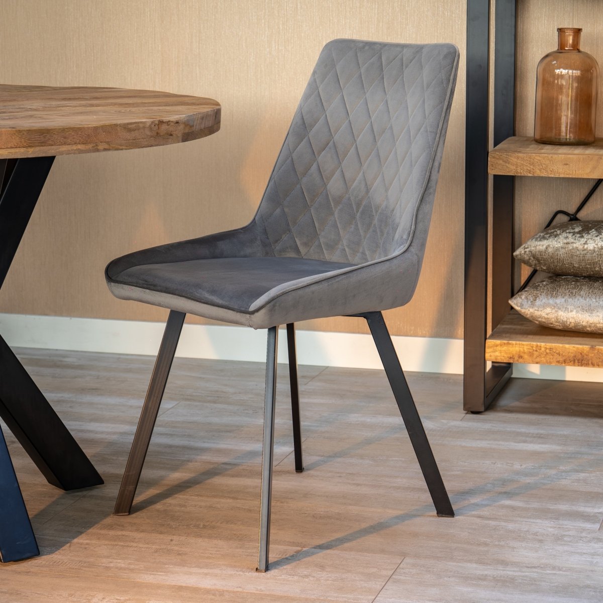 Bereichern Sie das Esszimmer mit dem trendigen Esszimmerstuhl Reims! Der hellgraue Sitz wirkt sehr angenehm, während das Rautenmuster für mehr Klasse in Ihrem Esszimmer sorgt. Der weiche Samtsitz hat ein stilvolles, eckiges Finish, das... verleiht dem Stuhl einen einzigartigen, schicken Charakter.