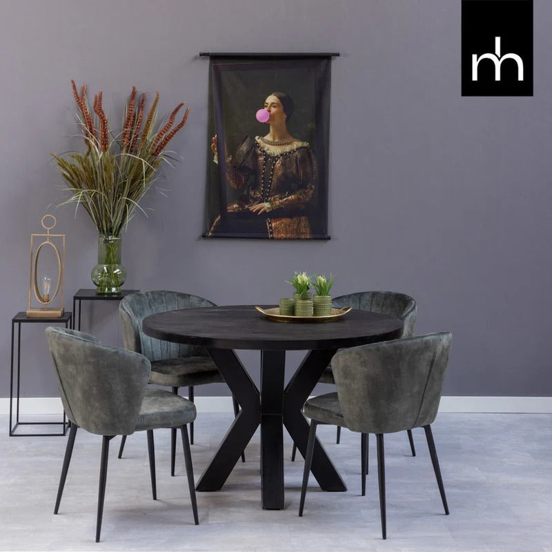 Die kräftige Dunkelgrüne Farbe des Esszimmerstuhls Toulon wird in Ihrem Esszimmer von Anfang an präsent sein. Dazu passt die warme Kombination der Sitzfläche mit den schwarzen Metallbeinen perfekt in einem industriellen und modernen Interieur.