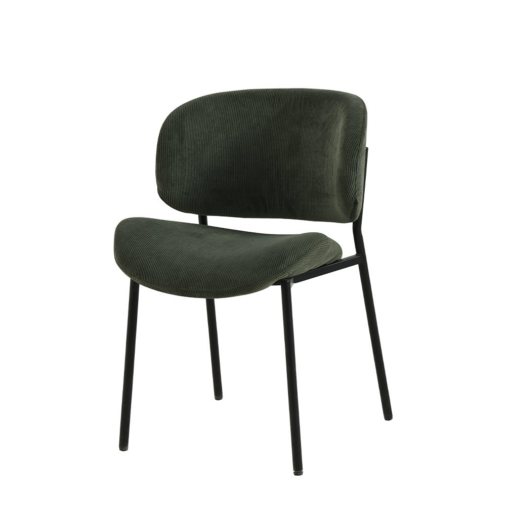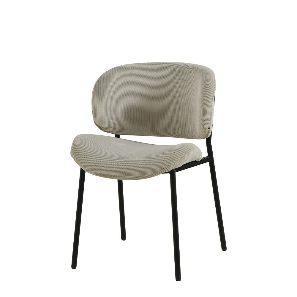 Samt wird aus Baumwolle oder Seide hergestellt. Der Stoff ist so gewebt, dass kleine, aufrechte Schlaufen entstehen. Diese Schlingen werden dann abgeschnitten, wodurch kleine Härchen entstehen, die sich weich anfühlen. Dies verleiht dem Samt sein charakteristisches schickes Aussehen. Die Beine bestehen aus schwarz pulverbeschichtetem Metall.