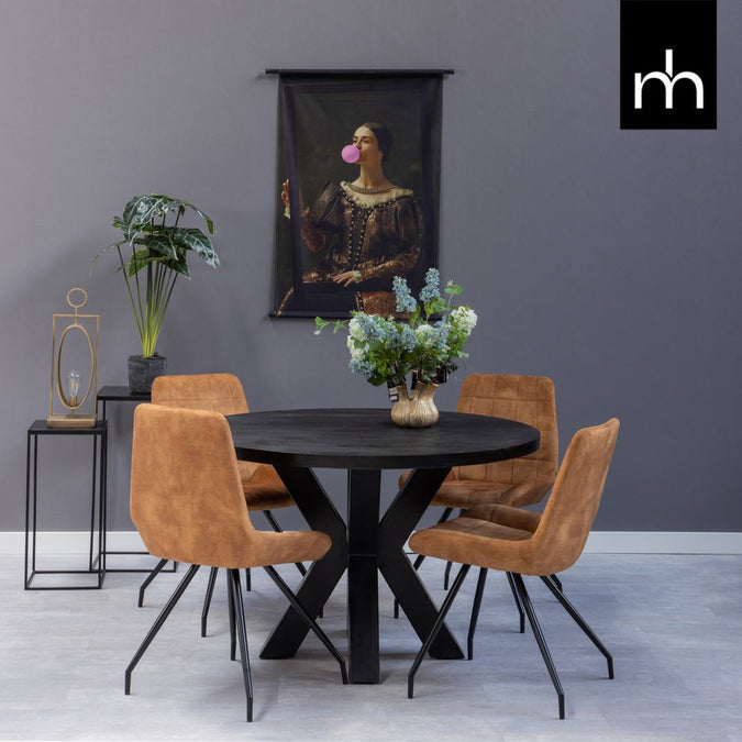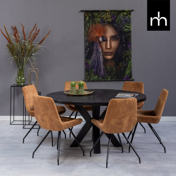 Dieser Toulouse-Esszimmerstuhl hat dank der Sitzfläche in der Farbe Cognac ein klassisches Aussehen. Die Sitzfläche hat ein Karomuster, das für zusätzlichen Sitzkomfort an einem perfekten Abend sorgt. Dank des eckigen Designs der Beine passt der Stuhl perfekt in ein industrielles Interieur.