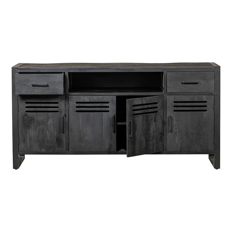 Das Henderson-Anrichte ist von den alten Schließfachschränken inspiriert, an die Sie sich vielleicht aus der Vergangenheit erinnern. Die Türen in Kombination mit dem schwarzen Mangoholz und den Stahlrahmen verleihen Ihrem Wohn- oder Schlafzimmer einen robusten und industriellen Look. In den Schubladen und in den geräumigen Fächern hinter den Türen ist ausreichend Platz, um alles zu verstauen, etwa wichtige Papiere, Bastelbedarf oder Geschirr.