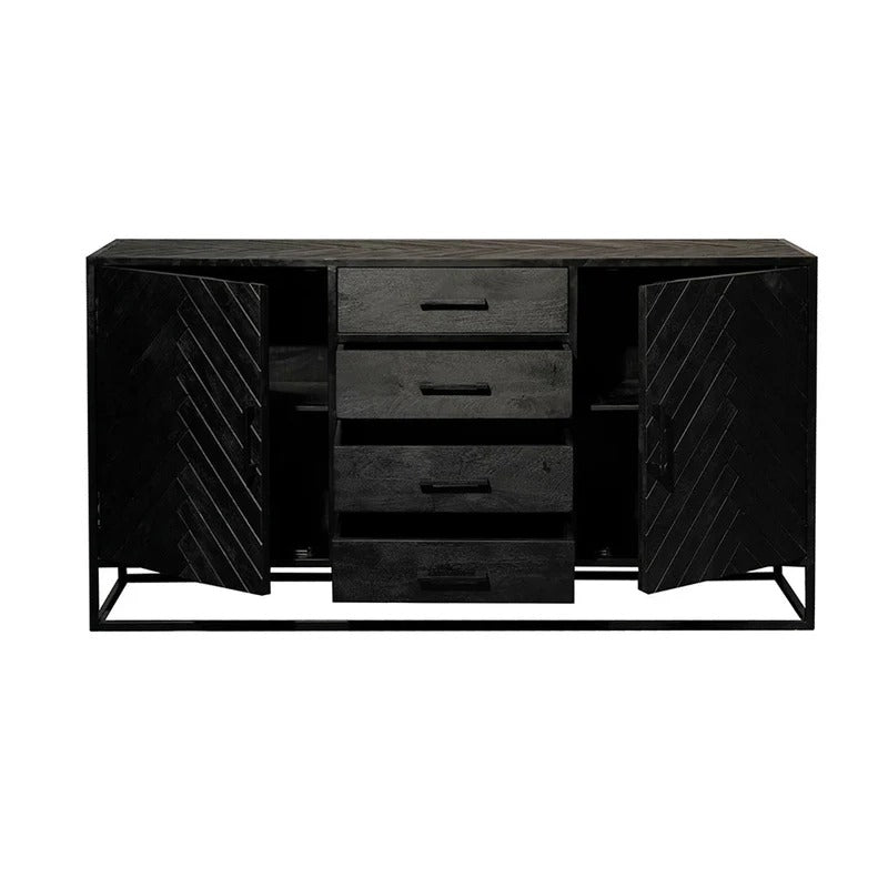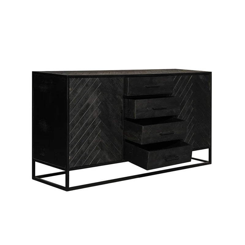Suchen Sie eine schwarze Kommode, möchten aber etwas anderes? Von den anderen schwarzen Anrichten in unserer Kollektion? Dann entscheiden Sie sich für dieses schicke, geräumige Anrichte mit Fischgrätenmuster. Das Anrichte verfügt außerdem über vier geräumige Schubladen und zwei große Fächer hinter jeder Tür, um alles zu verstauen. So haben Sie eine fantastische neue Kommode und das Haus bleibt auch erhalten ordentlich!