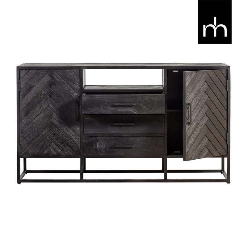 Wenn Sie auf der Suche nach einem stilvollen Anrichte sind, könnte das Anrichte Toronto die perfekte Lösung sein. Das Fischgrätenmuster verleiht diesem schmalen Anrichte eine sehr elegante Optik, die sofort die Blicke auf sich zieht. So kann ein kleines Möbelstück noch Platz finden Seien Sie das Prunkstück Ihres Interieurs. Obwohl das Möbel recht schmal ist, bietet es in den drei Schubladen und den zwei Räumen hinter den Türen viele Aufbewahrungsmöglichkeiten. Das offene Fach kann beispielsweise ein praktischer Ort für Ausrüstung sein.< /p>
