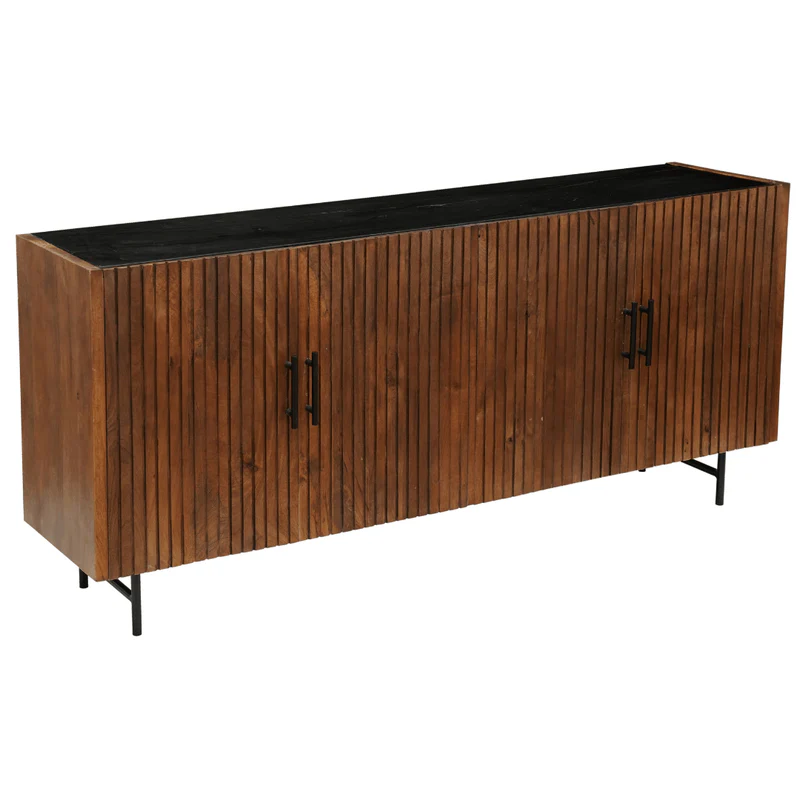 Dieses wunderschöne 175 cm große Tucson-Anrichte aus wunderschönem Mangoholz verleiht jedem Raum eine warme und elegante Atmosphäre. Mit seinem schlanken Design und der raffinierten Walnussoberfläche sowie einer luxuriösen Marmorplatte vereint dieses Anrichte mühelos Funktionalität und Stil in Ihrem Interieur.