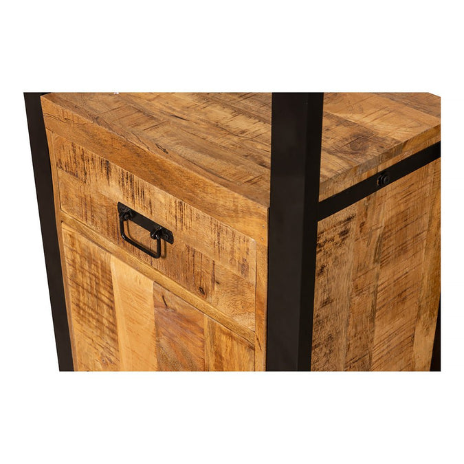 Auf das massive Mangoholz werden mehrere Schichten Holzöl und ein klares, natürliches Bienenwachs aufgetragen. um das Holz vor Feuchtigkeit, Schmutz und Ringen zu schützen. Das Gestell und die Griffe bestehen aus schwarz pulverbeschichtetem Metall.
