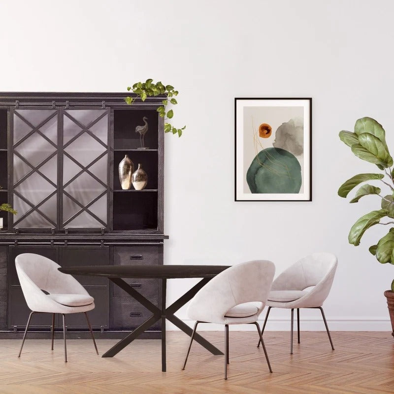 Der 300 cm breite Bologna-Esstisch ist der größte in der Bologna-Kollektion. Die dünne Tischplatte aus schwarzem Mangoholz verleiht dem Tisch zusammen mit den modernen Matrixbeinen einen zeitlosen Charakter. Aufgrund seiner Größe ist dieser Tisch ideal für große Gruppen. Die abgeschrägte, dünne Tischplatte lässt den Tisch trotz seiner Größe edel wirken.