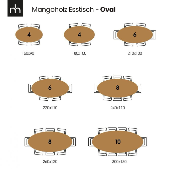 Ein ovaler Esstisch sorgt für die schönsten Abende! So können Sie gemeinsam speisen oder einfach nur eine gute Tasse Kaffee trinken. Die warmen Farben des Holzes passen perfekt in jeden Zuhause und die ovale Form nimmt außerdem weniger Platz ein als ein rechteckiger Tisch.