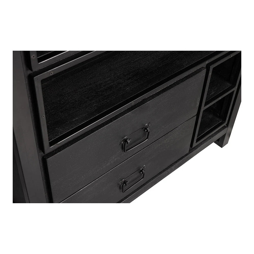 Der Mango Wood Stockton schwarz Cabinet ist durch die Kombination aus zwei Schubladen, mehreren offenen Fächern und einer großen Tür vielseitig einsetzbar. So schön Der Schrank ist ideal für die Aufbewahrung von Zubehör aller Art. Dank seiner Kompaktheit passt er wirklich in alle Räume Ihres Zuhauses.