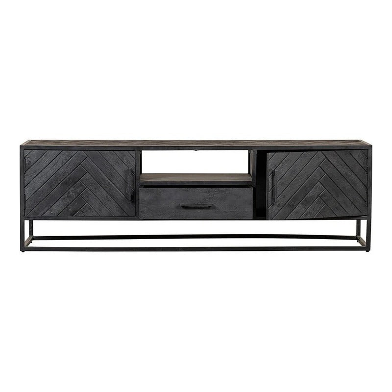 Dieser robuste Fernsehschrank aus der Sienna-Serie ist sehr einzigartig, da er mit einem Fischgrätenmuster versehen ist. Dies verleiht den Möbeln einen einzigartigen, eleganten Charakter, der das ausmacht Möbel machen den Raum zum Hingucker. Das Möbel verfügt über viel Stauraum in der Schublade und hinter den geräumigen Türen. Im offenen Fach können Geräte wie ein TV-Receiver oder eine Spielekonsole untergebracht werden, deren Kabel darin Platz finden lässt sich leicht auf der Rückseite verbergen.