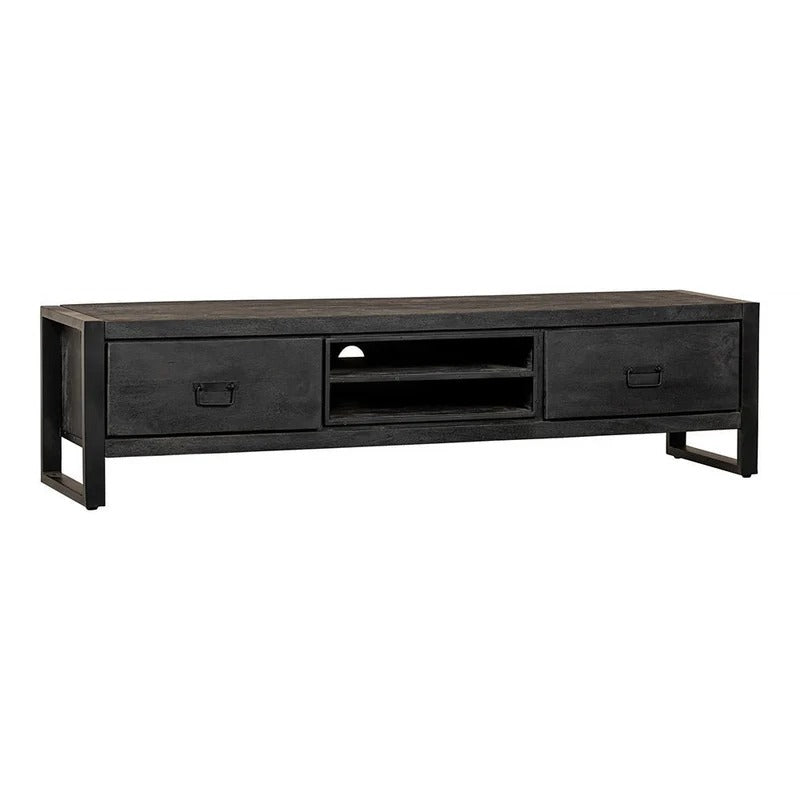 Dieser schicke, schwarze Fernsehschrank ist eine Bereicherung für jeden Raum! Der Schrank ist sehr multifunktional und hat ein cooles, industrielles Aussehen. In den beiden geräumigen Schubladen lässt sich alles verstauen, etwa DVDs, Computerspiele oder LPs. Die beiden offenen Fächer können zur Aufbewahrung von Ausrüstung genutzt werden und die Kabel lassen sich leicht verstecken.