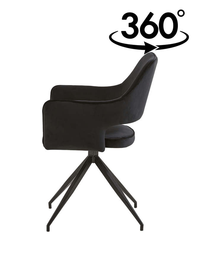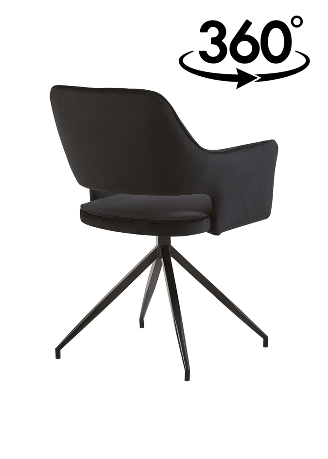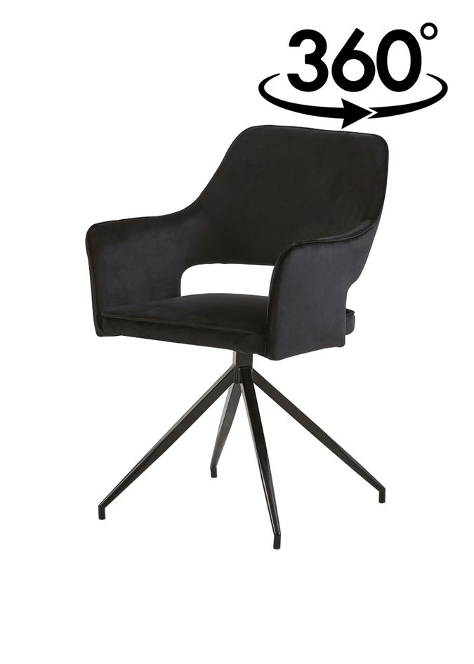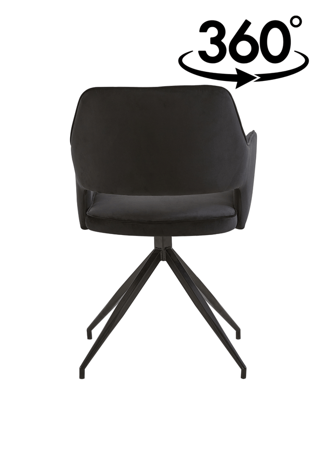 Der weiche Samt der Sitzfläche des Esszimmerstuhls Paris verleiht Ihnen einen warmen, weichen und bequemen Abend. Die schwarzen Farben verleihen dem Stuhl einen stilvollen Charakter, während das kantige Design der Beine dafür sorgt, dass der Stuhl perfekt in eine passt Industrieller Wohnstil.